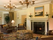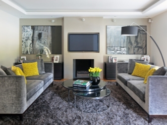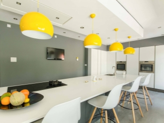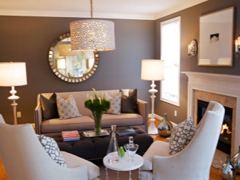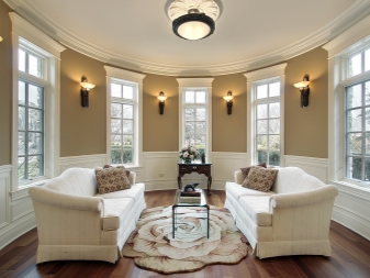 - Dans les chambres avec des meubles massifs, les options idéales sont hémisphère et plaque. De telles formes aideront à mettre en valeur l’intérieur et à mettre en valeur tous les avantages des plaisirs du design.