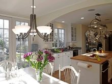 Grâce à l'assortiment de différentes formes de plafonniers, vous pouvez choisir le bon look pour n'importe quelle solution de style de la pièce. Pour une grande pièce, un lustre assez grand avec des nuances de verre et un décor riche sera une excellente solution. Vous pouvez également utiliser le lustre sur quelques cornes.