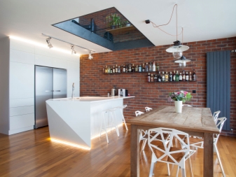 - Couvercle carré Ce sera une excellente solution pour le placement dans le style urbain, sera également une option immaculée pour une pièce dans un style loft et minimalisme.