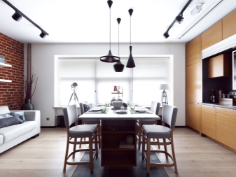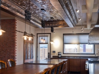 Les fabricants proposent des options assez intéressantes pour le style de loft actuellement populaire: des modèles en métal grossier, des combinaisons intéressantes de métal, de papier, de bois et d'autres matériaux offrent un espace considérable pour la décoration.