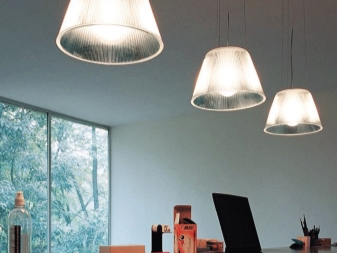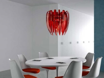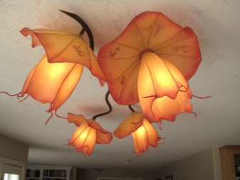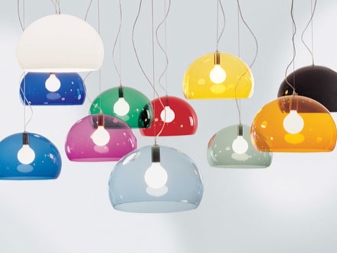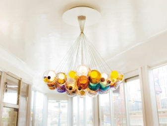 Les fabricants proposent aujourd'hui de nombreux types de matériaux pour la fabrication de plafonds: verre, plastique, polycarbonate, métal, bois et même papier. En outre, il convient de rappeler que, dans les conditions du marché moderne, vous pouvez acheter des plafonniers séparément du cadre du lustre. Ils peuvent à la fois s'adapter parfaitement aux modèles et servir de pièce de rechange en cas de défaillance de ceux qui étaient déjà inclus, et créer un tout nouveau design.