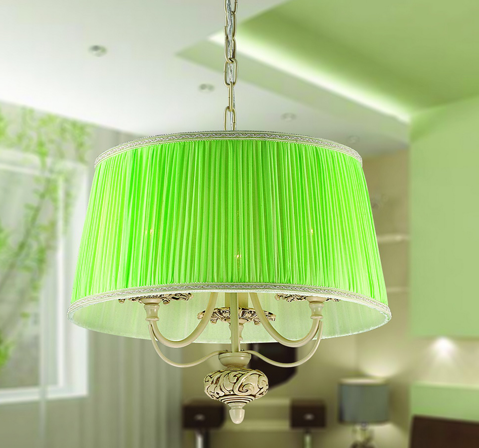 Une solution de couleur très populaire pour la chambre à coucher est le vert. Depuis cette couleur joue le rôle de couleur pour la relaxation et la pacification. Selon l'ombre, vous pouvez obtenir différentes options d'éclairage.