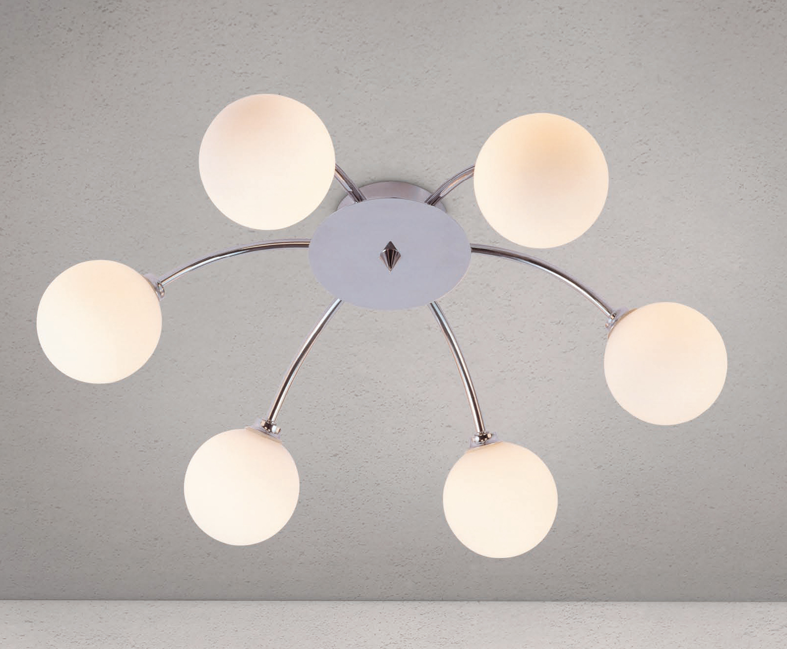 La lampe de plafond est un élément fonctionnel de la conception générale du lustre, qui sert de diffuseur. Le plafonnier ferme la lampe, assure une transmission et une dispersion uniformes du flux lumineux et protège également l'œil humain de l'exposition directe à la lumière.