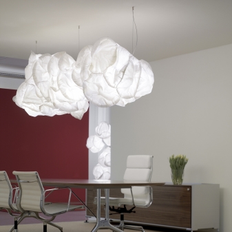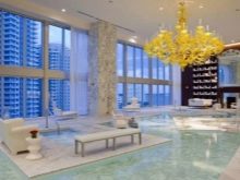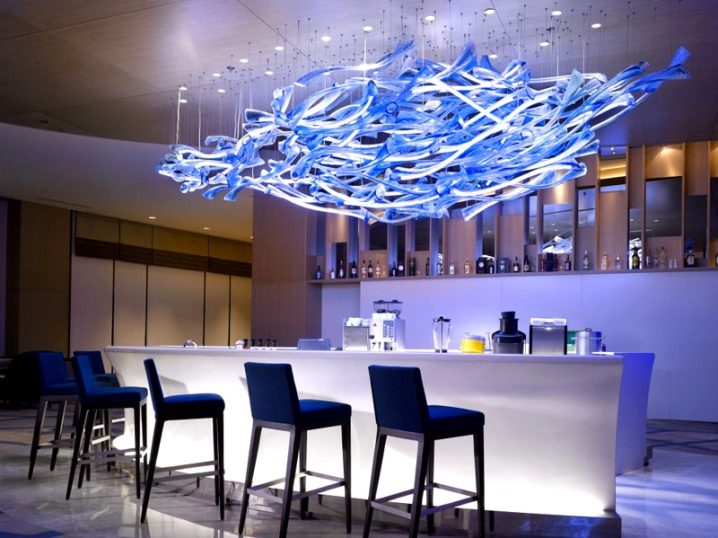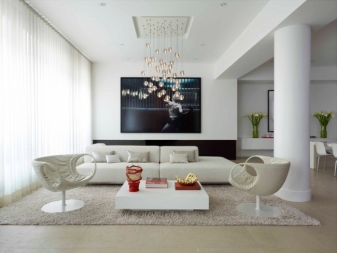 Dans les petites pièces, des sources d'éclairage supplémentaires pour une telle lampe peuvent ne pas être utiles, mais dans les pièces spacieuses, il est préférable de refuser d'installer un tel modèle en raison de son absurdité par rapport à l'arrière-plan d'un espace aussi vaste.