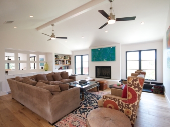 - Mérite une attention particulière fans de lustres. Ils aident à refroidir la pièce, ce qui leur permet souvent de remplacer les systèmes de climatisation et les systèmes split. Une option de refroidissement similaire concerne le budget et les fonctions, car en plus de la fonction de ventilation, le propriétaire de la pièce dispose d’un lustre à part entière.