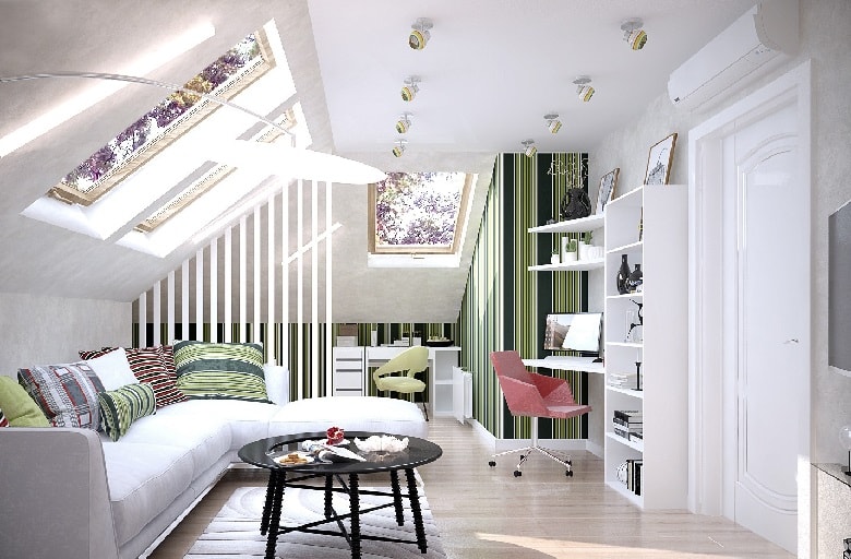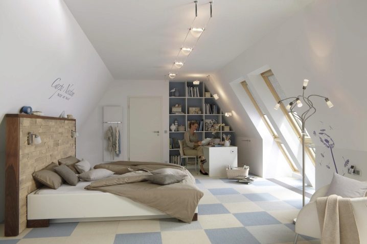 Il est préférable de ne pas installer de luminaires encombrants sur les puits de lumière dans le grenier, mais les petites conceptions individuelles suspendues conviendront parfaitement. Les mécanismes rotatifs vous permettent de diriger la lumière en fonction des besoins des propriétaires, en fournissant un éclairage uniforme.