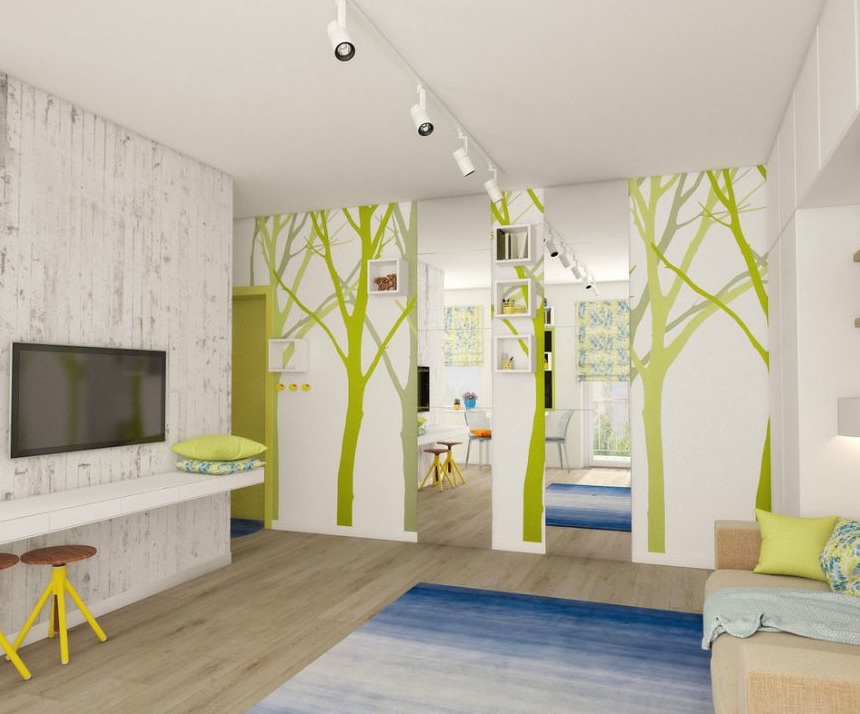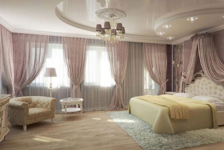 Les modèles rose, jaune et rouge ont fière allure à l'intérieur d'une chambre ou d'une chambre d'enfants. Pour la pépinière, il est préférable de choisir des teintes juteuses et, pour les chambres à coucher, des couleurs douces conviennent. Vous pouvez combiner des éléments lumineux.Par exemple, les bases noires sont élégantes en combinaison avec des nuances de lilas ou de pêche.
