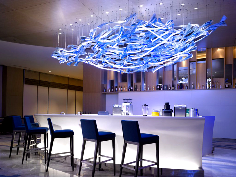 - Une nouvelle tendance omniprésente introduction de miroirs. Les surfaces des miroirs réfléchissent bien la lumière, ce qui augmente la zone d’éclairage et vous permet également de créer des motifs fantaisistes surréalistes. Le verre revêtu d’argent peut être fondu sous n’importe quelle forme, ce qui laisse une grande marge de manœuvre pour les expériences. Les concepteurs fabriquent également des miroirs de substrat pour les lustres suspendus standards afin d’accroître leur rendement lumineux.