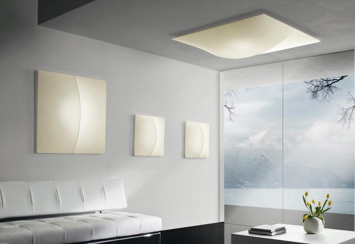 En général, les petits plafonniers peuvent avoir une grande variété de configurations: sphérique, carrée, ronde, polygonale, figurée, cristalline, ovale, etc. Avec des lampes de grand diamètre, les choses sont un peu plus compliquées. Si vous choisissez une forme complexe géométrique ou imaginaire, la lanterne doit être volumineuse et multicouche. Les formes simples (carrées, circulaires, etc.) sont généralement réalisées sous la forme de panneaux et remplissent la fonction d'éclairage auxiliaire.