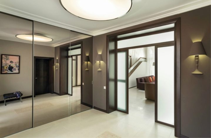Il n'est pas nécessaire d'installer une lumière vive dans le couloir, il suffit parfois d'ajouter un soupçon d'éclairage. Cependant, la présence abondante d’ampoules lumineuses vous permet d’augmenter visuellement la surface du couloir et de créer un éclairage supplémentaire dans la zone du miroir.