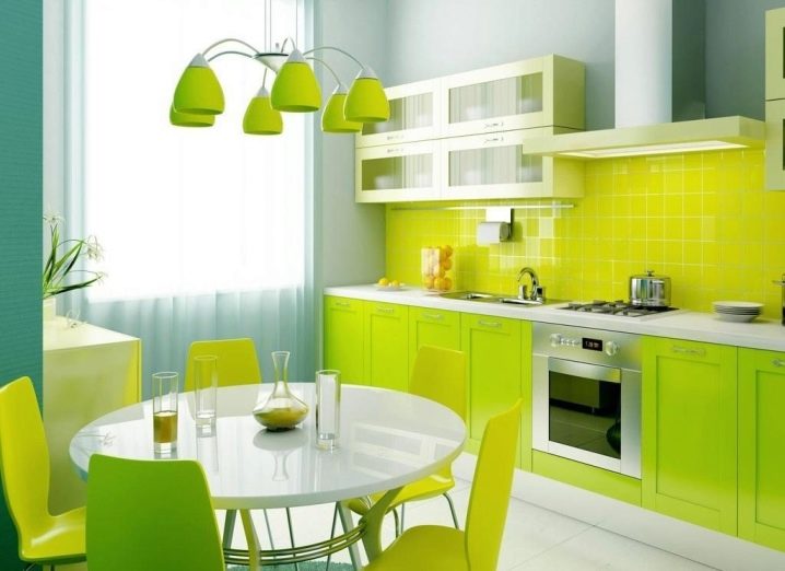 Les feux verts se trouvent le plus souvent dans les intérieurs écologiques. Presque toutes les nuances sont utilisées: de la pistache à la riche émeraude.
