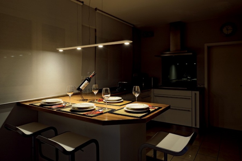- Changement de flux lumineux. En tournant la lampe, vous pouvez donner à la pièce un style unique, car la lumière tombera d'une nouvelle manière sur les objets. Dans le cas des spots, ils peuvent être utilisés pour zoner un territoire ou comme rétro-éclairage dans la cuisine.