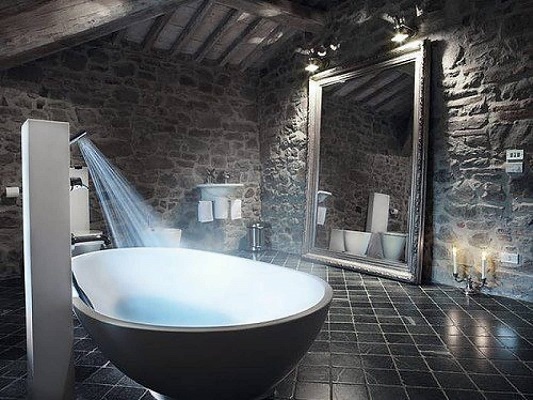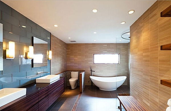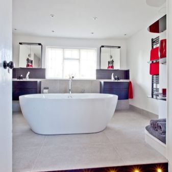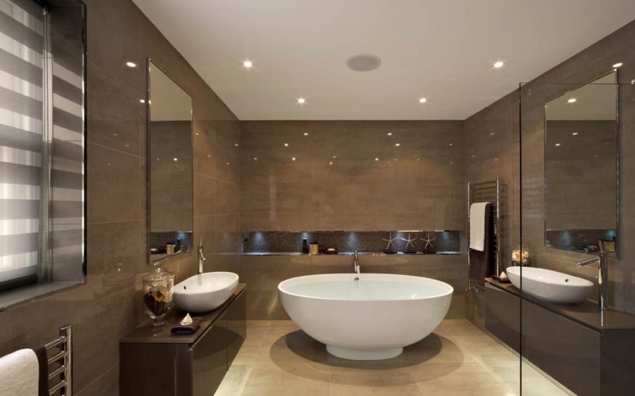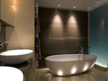 - Incarnation élégante. Grâce aux projecteurs correctement sélectionnés dans la salle de bain, vous pouvez mettre en valeur le style de la pièce et créer un environnement confortable pour la détente et le repos.
