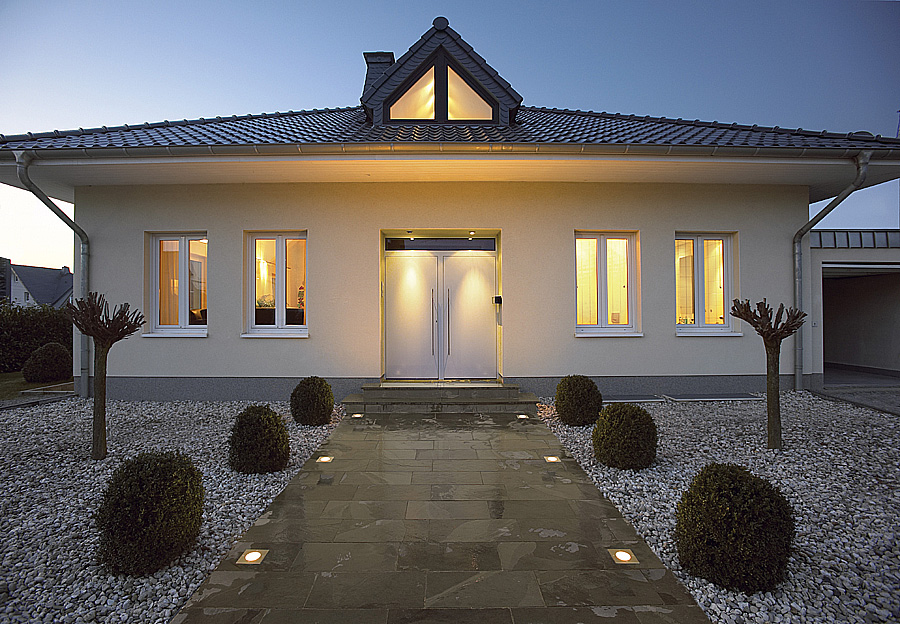 Les lampadaires à encastrer sont remarquables par leur méthode d’installation: leur partie principale est dissimulée dans un trou pratiqué dans le mur. Pendant la journée, elles sont pratiquement invisibles et, à la tombée de la nuit, ces LED éclairent merveilleusement la maison, soulignant ainsi les caractéristiques de son style architectural. Le dispositif d'éclairage lui-même est caché et n'attire pas l'attention du tout. La variante est idéale pour organiser l'éclairage décoratif de tout objet, des bâtiments sculpturaux aux musées et complexes commerciaux. Ces lampes sont facilement montées sur le toit dans une ouverture spécialement conçue, créant un éclairage doux et agréable pour les yeux.