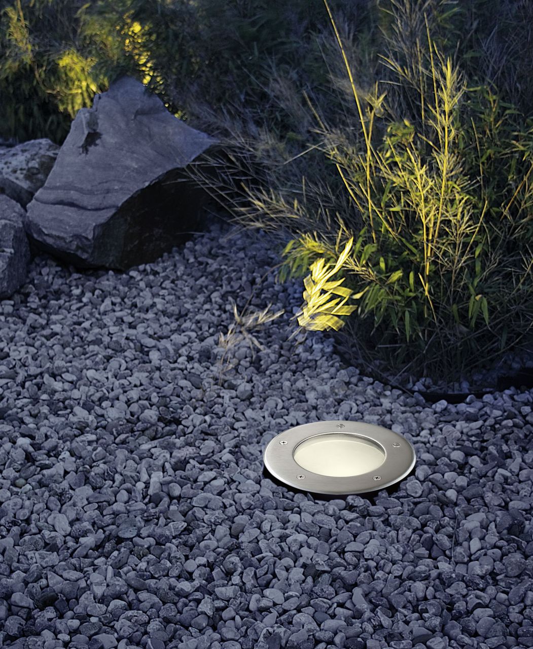 - Une autre lampe à LED populaire - "Led Ground 357141". Il est produit par une société hongroise. NovoTech. Le kit comprend 6 lampes, donc le prix est assez élevé. Il atteint presque 16 000 roubles. Ces produits sont parfaits pour les chemins de terre dans le jardin ou à la campagne. Le design et le paysage ruraux complètent avec succès la lampe en acier argenté avec un auvent en verre trempé translucide dépoli. Dans le produit de la société hongroise utilisé SMD 3350 base, pour laquelle la lampe LED appropriée avec une capacité de 0,9 watts. Au total, pour un tel appareil aura besoin de 12 lampes. Sa protection contre l'eau et la saleté est très fiable et est de 67 IP. Zone d'éclairage peut atteindre 3 mètres carrés. Les 12 lampes nécessiteront une tension standard de 220 volts. Les dimensions d’une telle lampe sont les suivantes: la hauteur est de 28 millimètres, le diamètre est de 59 millimètres.