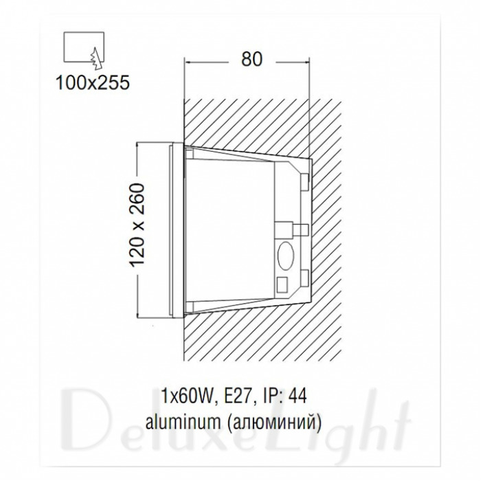 - Brique Modèle A5158IN-1GY produit par une entreprise italienne Lampe Arte, le coût est de près de 1500 roubles. Une telle lampe rectangulaire est parfaite pour un montage mural. Tonnelle, chalet ou maison de campagne seront transformés par de tels détails légers.Les ferrures en métal galvanisé gris, associées à un auvent en verre dépoli, s'adaptent à presque tous les intérieurs et paysages. La base E27 est conçue exclusivement pour les lampes à incandescence jusqu’à 60 watts. La protection contre l'humidité et la poussière est légèrement inférieure à celle des structures extérieures et est de 54 IP. Zone d'éclairage peut atteindre 3 mètres carrés. Cette lampe nécessite une tension de 220 V. Pour installer cet appareil, vous devez prendre en compte la taille et la distance du mur, qui doit être au minimum de 260 millimètres. Les dimensions sont: hauteur - 80 millimètres, largeur - 120 millimètres. Le diamètre du trou de mortaise est de 65 sur 100 sur 255 millimètres. Une telle lampe fait partie de la série Brick, la garantie est de 12 mois.