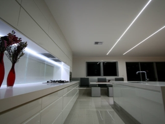 Pour la réalisation d'aménagements intérieurs complexes utilisant un éclairage LED linéaire. De tels dispositifs peuvent être trouvés non seulement dans les plafonds, sur les murs, mais également dans les miroirs, les niches à podium et autres structures complexes. Tous les appareils linéaires sont compacts, pratiques et faciles à utiliser. Avec une approche appropriée peut être utilisé non seulement comme zone, supplémentaire, mais aussi comme éclairage principal.