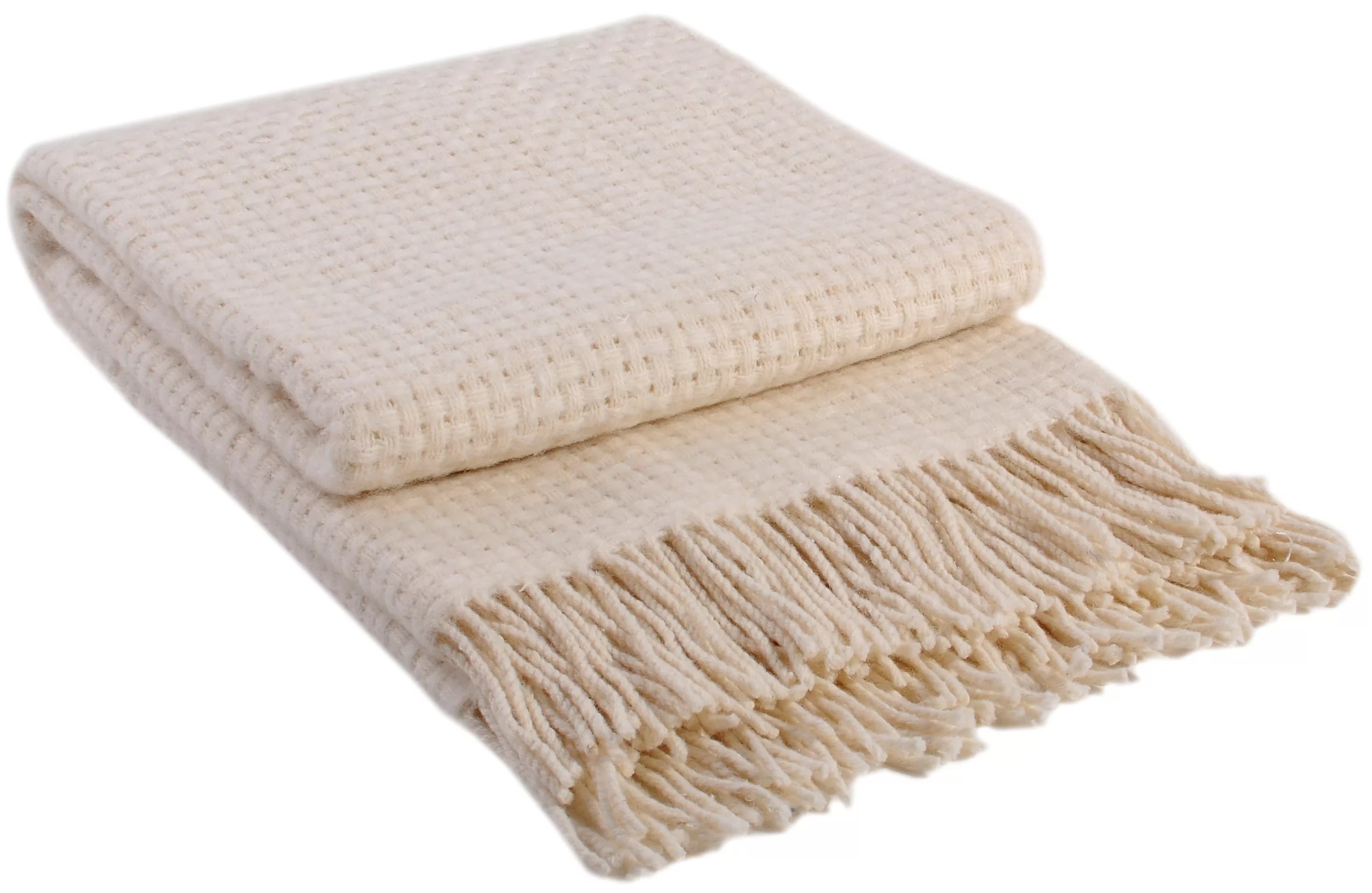 De telles couvertures contiennent 100% de laine, coupées dans le garrot d'un mouton à la toison fine. Les fibres ont une densité et une épaisseur supérieures, de sorte que leurs produits sont chauds et assez volumineux. Lavez-les soigneusement, conformément aux instructions de l'étiquette. Une telle attitude vis-à-vis de la laine de mouton étendra son fonctionnement. Mais si la couverture est devenue inutilisable, le remplacement ne sera pas trop coûteux.