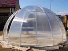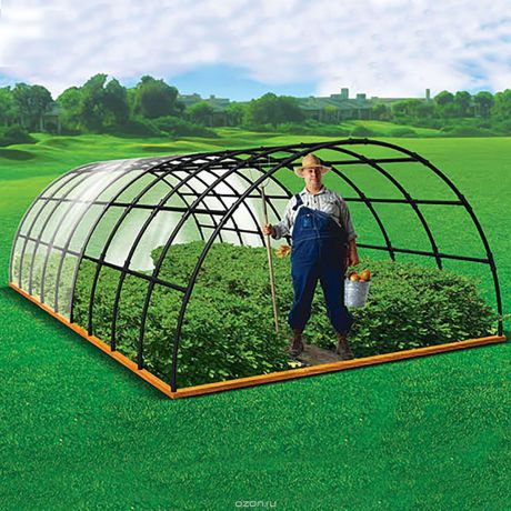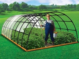 Vous pouvez également faire une serre voûtée à partir d'un tuyau en forme. Ce bâtiment a souvent une petite hauteur, mais le maître a la possibilité d’élever la "maison". Dans ce dernier cas, il sera possible non seulement de planter des plantes hautes, mais également de passer à la croissance maximale sans plier. Il est beaucoup plus pratique d’utiliser des structures à grande arche.Dans ces conditions, il sera possible de planter des greens renforcés sur des supports spéciaux.
