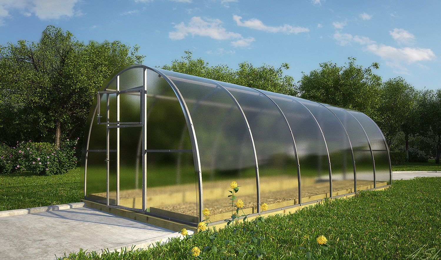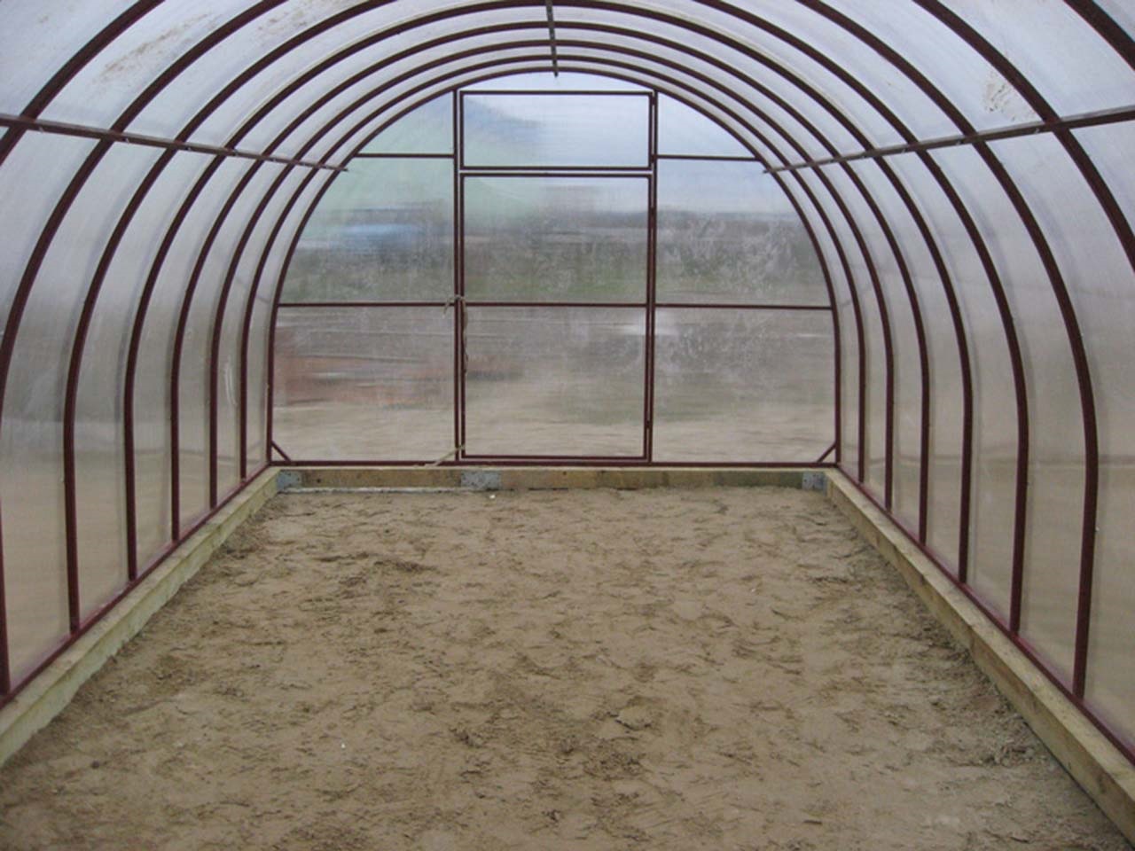 Le côté le plus long de la structure est généralement orienté vers le sud, de sorte que la plus grande quantité de soleil pénètre dans la partie intérieure de la serre. Garder la chaleur dans le bâtiment et simplifier le mouvement de son territoire aidera la porte fixée à la fin.