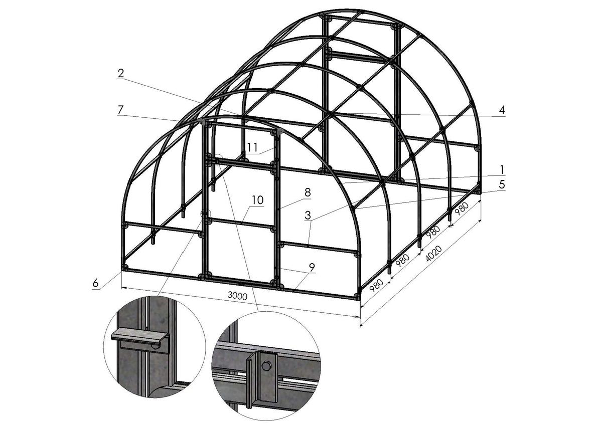 Avant de commencer à produire de manière indépendante une serre de haute qualité à partir d’un tuyau profilé, il est très important de bien concevoir son projet. Pour ce faire, vous devez préparer des dessins détaillés montrant tous les paramètres dimensionnels de la future construction. Beaucoup d'utilisateurs se tournent vers des systèmes prêts à l'emploi, les adaptant à leurs conditions et à leurs projets.Une telle solution est optimale si effectuer un tel travail pour vous est une chose complètement nouvelle et très difficile.