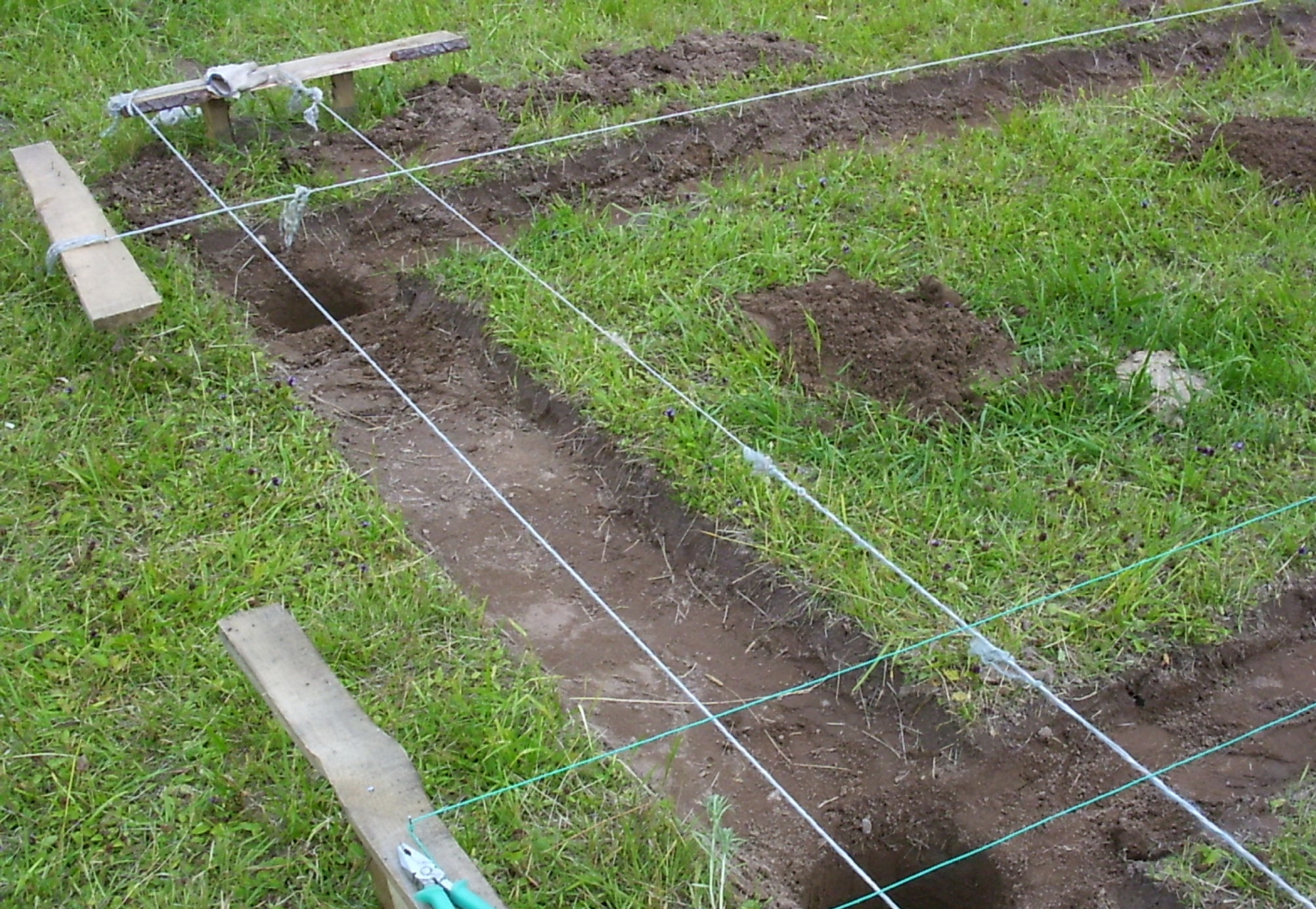 Avant de se lancer dans la fondation, il est très important de préparer correctement un lieu dédié. Il est complètement nettoyé de toute pollution. De plus, la couche de sol supérieure est souvent enlevée. Après cela, les marquages corrects sont effectués, sur la base du schéma créé précédemment, en martelant des poteaux en bois le long du périmètre de la future structure. Ces détails serviront de base à la tenue de la corde.