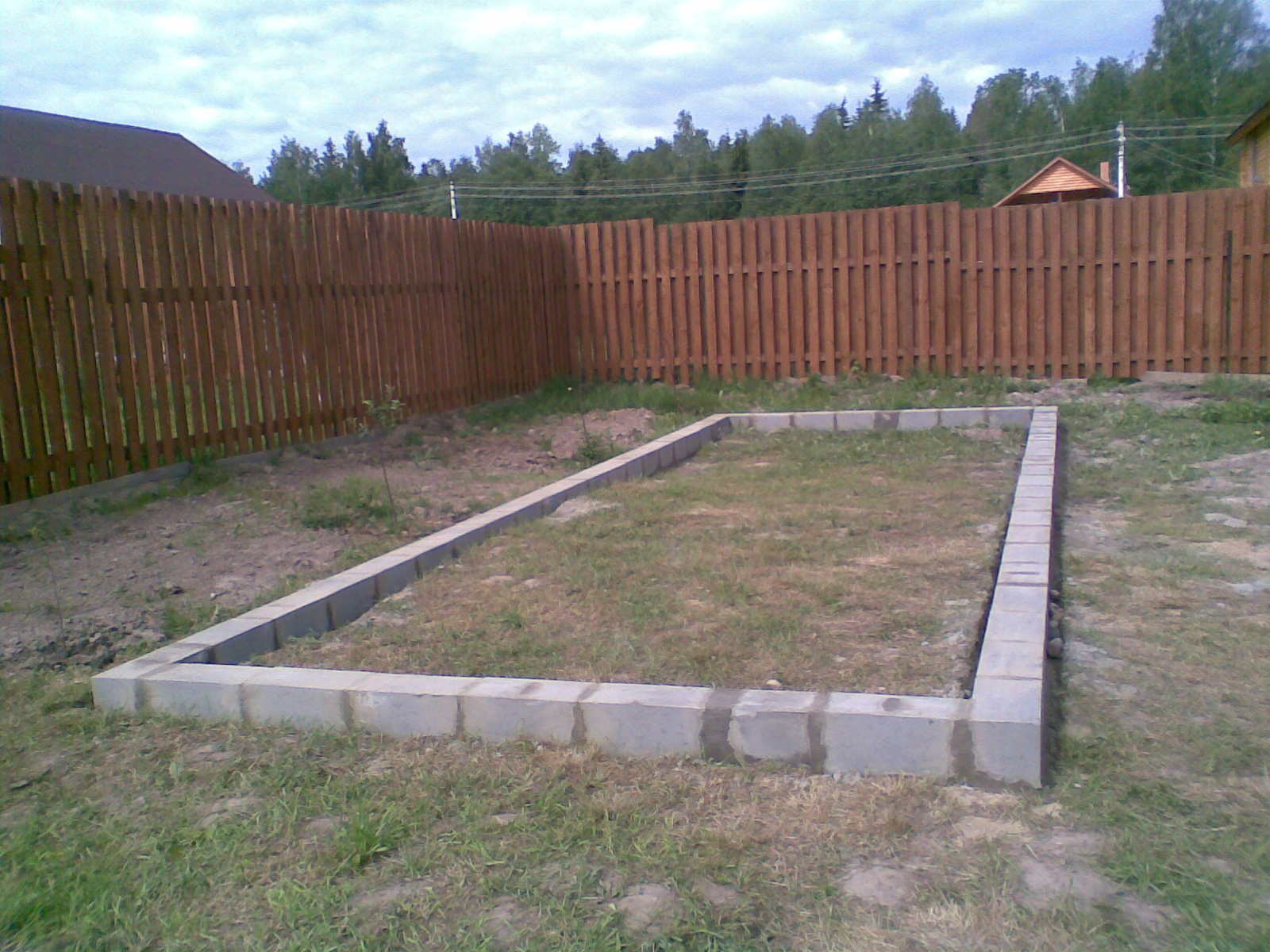Après cela, préparez la fosse dont la profondeur est approximativement de 0,8 à 1,0 m (selon la zone climatique et la profondeur de gel du sol). Ensuite, la solution de ciment y est versée jusqu’à la base longitudinale. Après cette base dans la partie transversale est bouillie aux composants longitudinaux. Pour rendre le dessin plus dense et plus stable, il est courant d’utiliser des coins spéciaux en métal. Des briques sont posées sous la base. Vous pouvez faire un petit groove.