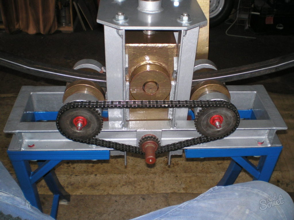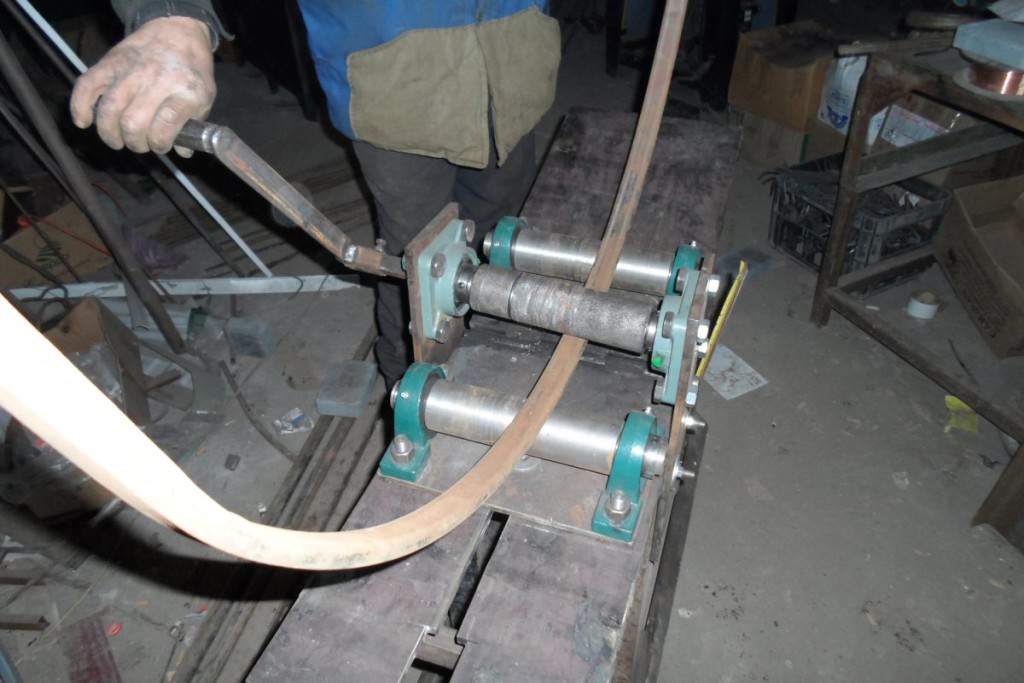 Il est possible de donner à l’ébauche la forme souhaitée d’une autre manière - en utilisant une plaque de pliage spéciale avec des trous faits à l’avance. Les encoches dans ce cas sont nécessaires pour placer les tiges de support. Après avoir placé le tube profilé entre deux tiges, introduits dans la dalle à la distance requise l'un par rapport à l'autre, le profilé est légèrement plié, transférant progressivement les efforts du milieu de la pièce métallique à sa périphérie. Effectuer un tel travail est assez abordable, mais cela peut être un processus assez difficile. Le résultat dépendra de l'effort fourni par le maître.