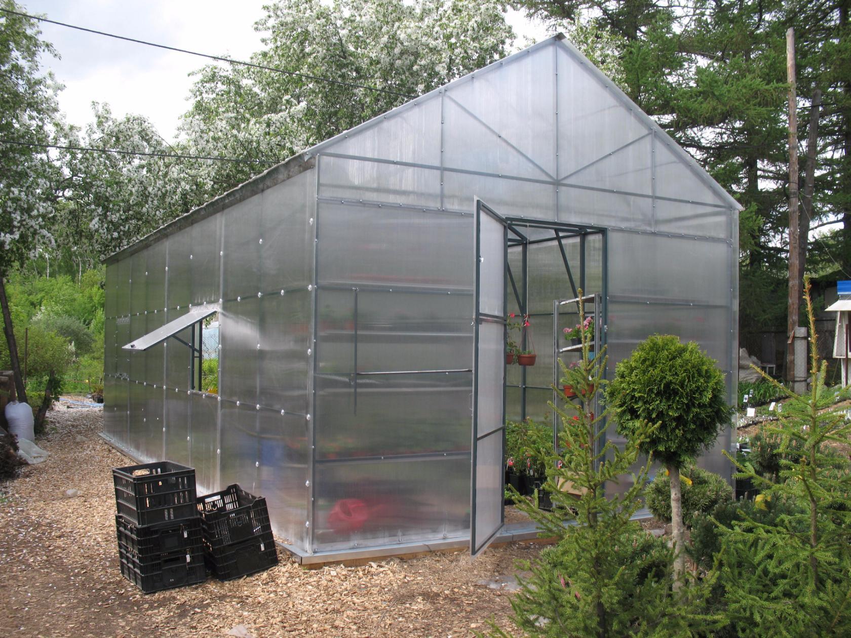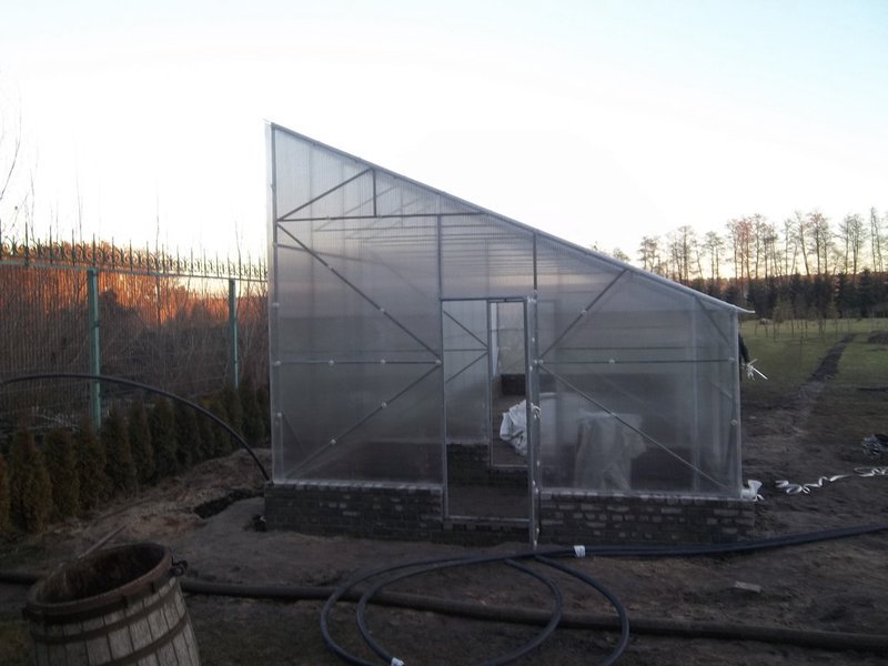 Si vous envisagez de construire une serre avec un toit en pente, il est recommandé de ne pas incliner son angle trop raide. En effet, cela peut entraîner une augmentation du pourcentage de réflexion de la lumière solaire. Pour cette raison, la serre sera moins efficace. Mais il ne faut pas non plus que la pente soit complètement inclinée: les chutes de neige en hiver peuvent être trop lourdes et la neige ne voudra pas rouler sur un toit aussi plat. Le résultat peut être trop mauvais.