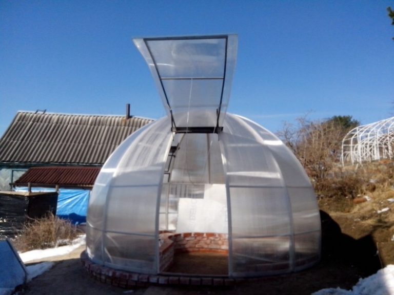 Le toit de la serre peut être constitué d’un tuyau profilé non seulement à pignon, mais également à un seul côté, triangulaire ou sphérique. Le choix de différentes conceptions est dû au fait qu'il est possible de fabriquer des composants de n'importe quelle structure à partir de ce matériau.