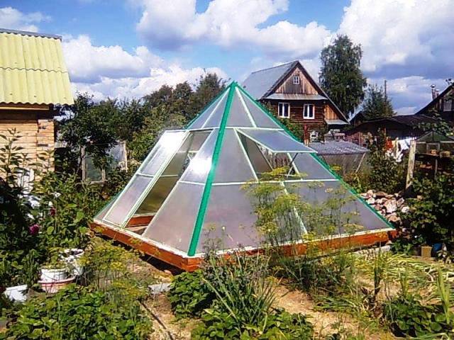 Un peu moins sur les sites, vous pouvez rencontrer la serre des tuyaux, faite sous la forme de pyramides. Ces options ont l’air très originales et fraîches. En outre, les serres pyramidales occupant peu d'espace libre, elles sont souvent érigées dans de petites zones, où chaque centimètre vaut son pesant d'or.