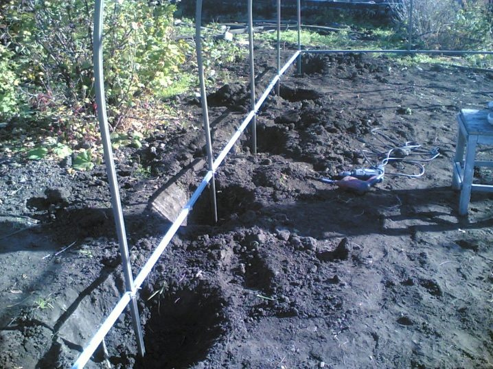 - Premièrement, le sol est foré, en adhérant strictement à une étape spécifique. Le diamètre de tous les trous doit être tel que le tuyau y soit placé sans obstacles, sans raccord supplémentaire.