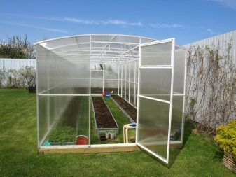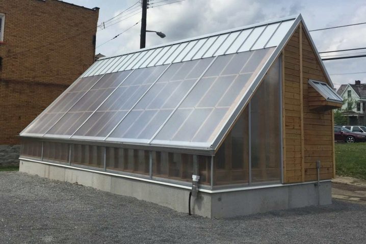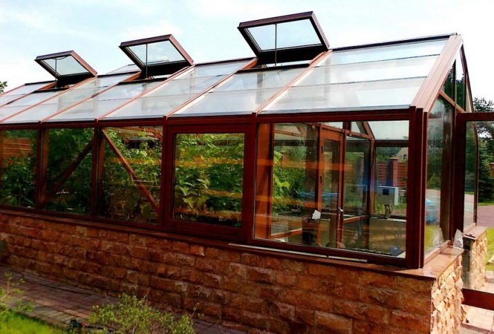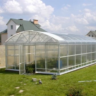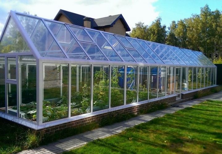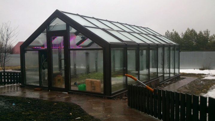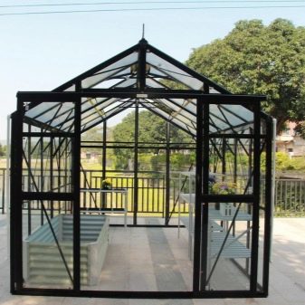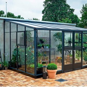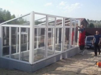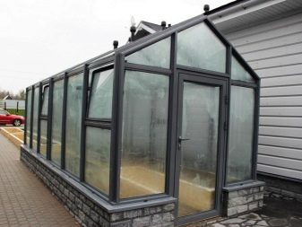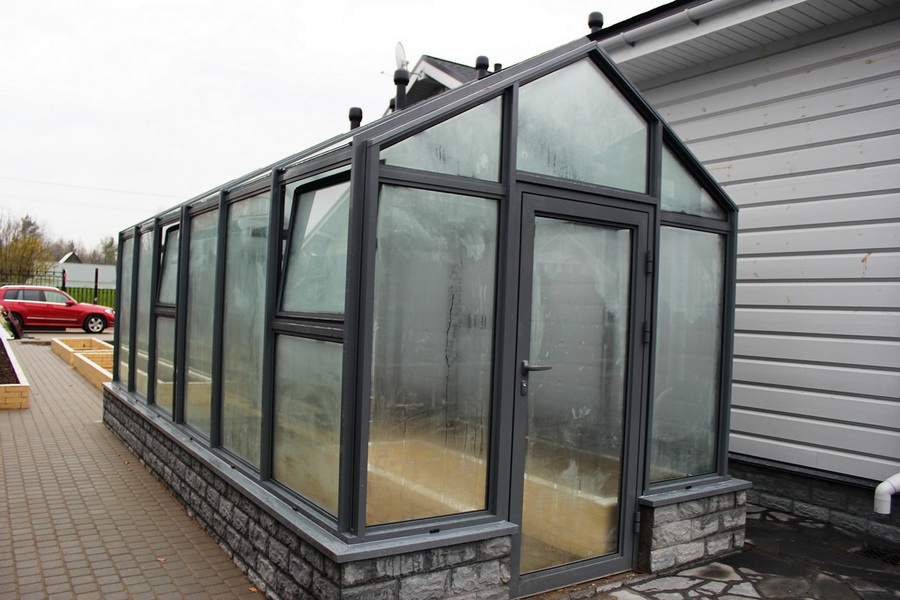 Il existe également des structures constituées de systèmes coulissants en aluminium.Il est possible d'ouvrir leurs parties latérales afin de ventiler la serre si nécessaire. De telles options sont très pratiques à utiliser s’il est nécessaire de normaliser le microclimat par une journée chaude. En règle générale, les échantillons d'aluminium avec des éléments en verre sont saisonniers. Ils sont assez difficiles à réchauffer et à s'adapter à la saison hivernale.