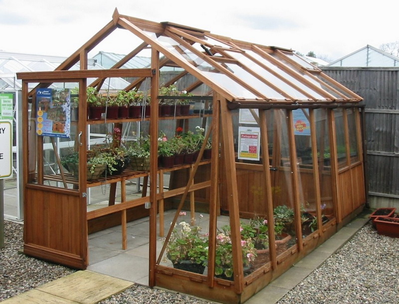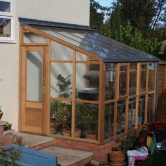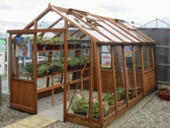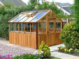 Le cadre de la serre en verre peut être en bois. Ce matériau est bon parce qu’il est écologique et attrayant. Les structures en bois visibles peuvent être peintes et vernies si les propriétaires le souhaitent. Toutefois, du point de vue pratique, les options en bois ne peuvent être qualifiées de valables. Le bois est sujet à la pourriture, à la fissuration et à "l'attaque" de toutes sortes de parasites. Une telle serre ne devrait pas durer longtemps, mais elle nécessitera un entretien régulier et un maximum de soins.