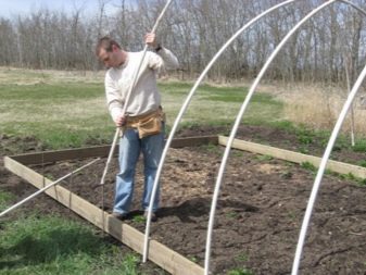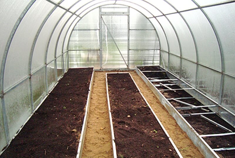 Si vous souhaitez éviter que la chaleur ne s'échappe du vitrage pendant la saison froide, vous pouvez réaliser de petites structures de tuyaux cintrées au-dessus des lits et les fermer en outre avec un film spécial pour serre.