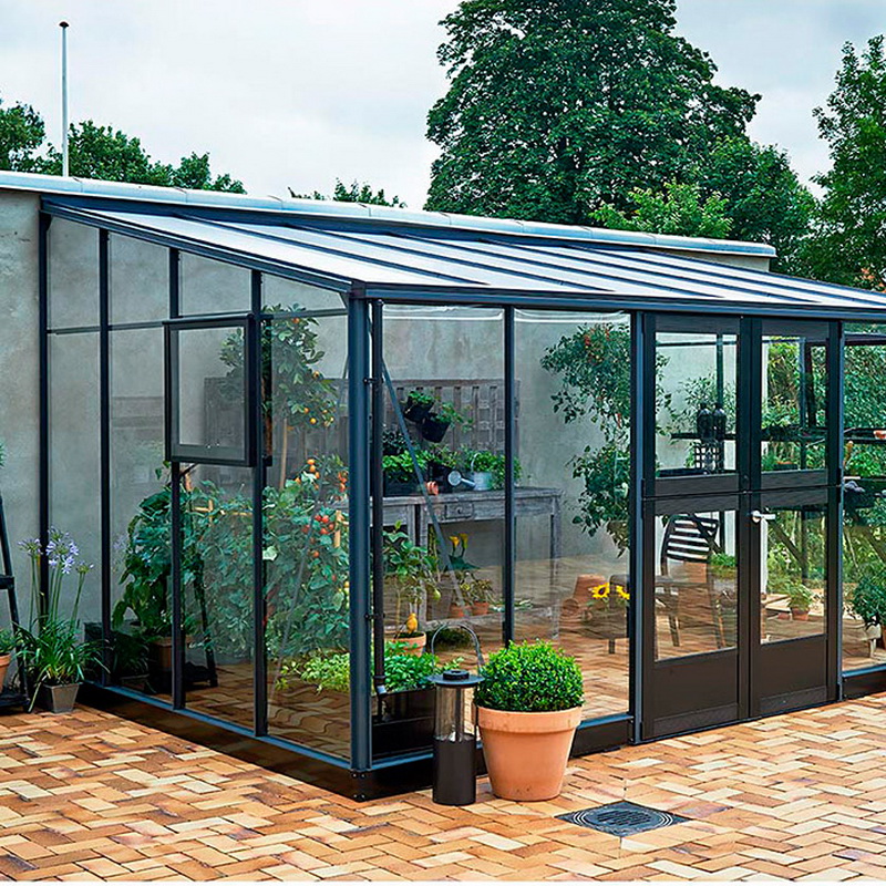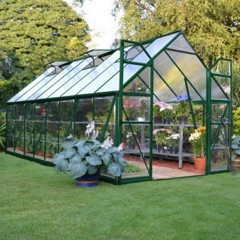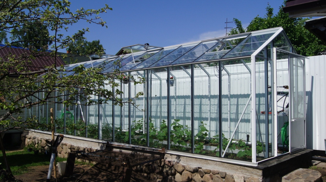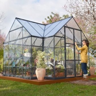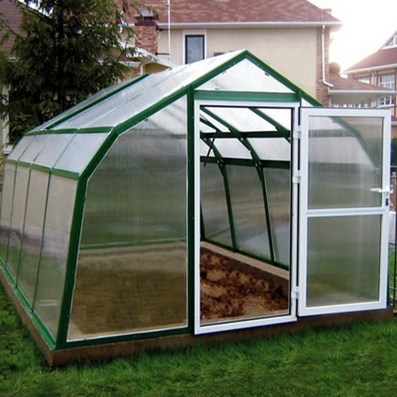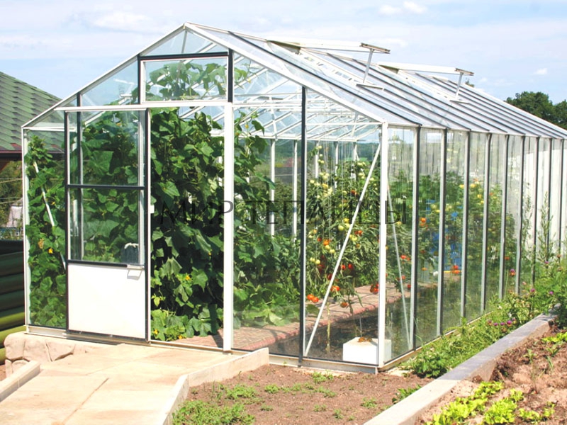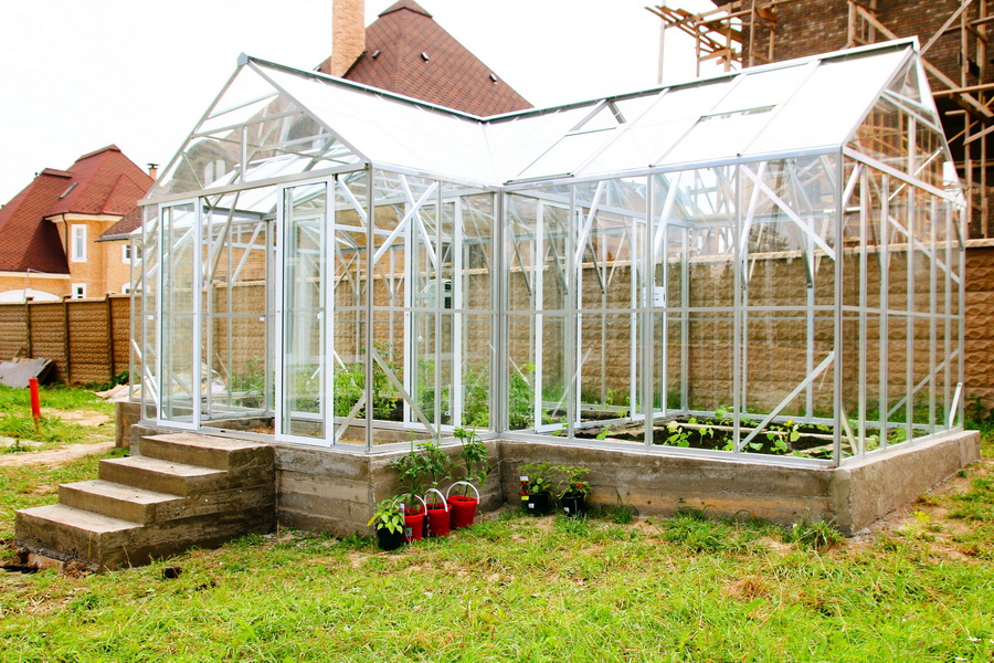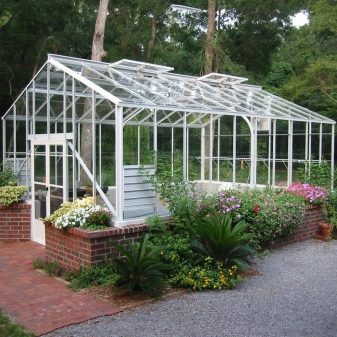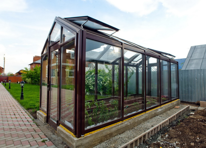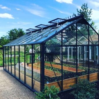 En outre, les serres en verre à cadre en aluminium sont très simples et sans prétention en matière de soins et d’entretien. Ils se lavent parfaitement et facilitent l'enlèvement des vieilles plantes. Selon de nombreux résidents d'été, ces bâtiments peuvent décorer le site, ce qui lui donne un style particulier.