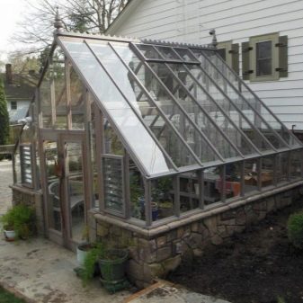 Les serres sont souvent faites de fenêtres en plastique. De telles conceptions sont reconnues comme étant l'une des plus pratiques, mais elles sont assez chères, surtout si vous utilisez des pièces entièrement nouvelles.Les profilés en PVC dotés de fenêtres à double vitrage de haute qualité produisent des serres très chaudes qui peuvent être utilisées sans entrave, même s'il fait froid dehors. Ces constructions retiennent parfaitement la chaleur, il n’est donc pas nécessaire de passer à un chauffage supplémentaire.