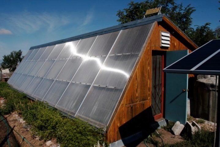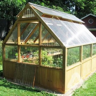 - Construisant une serre de vos propres mains, le toit peut être coupé non pas avec du verre, mais avec des feuilles de polycarbonate. Ce matériau est parfait pour cette raison.