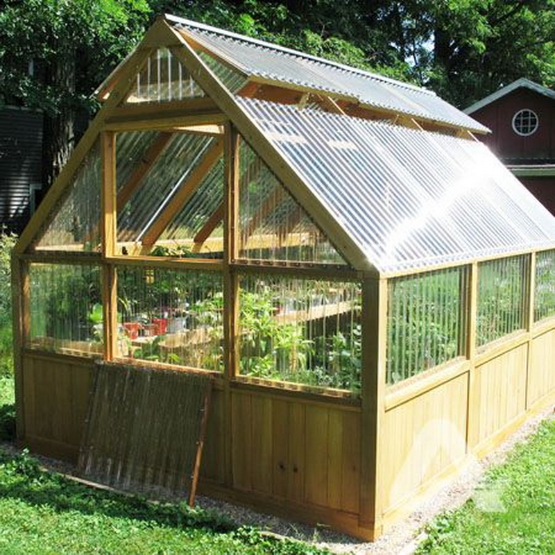 Serres en verre un peu moins communes, reposant sur un bâti en forme de tuyaux, revêtu de galvanisé ou peint. Pas la plus grande distribution de telles options en raison du fait que dans leur conception est assez problématique pour installer du verre. Pour cela, des cadres en bois sont également préparés, lesquels sont ensuite fixés à la base du cadre. Alors seulement, allez directement à la fixation des inserts en verre. De même, il est possible de poser des fenêtres en fibre de verre.