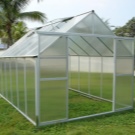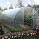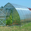 Le polycarbonate a également fait ses preuves: il remplace idéalement le film et le verre et convient aux structures de revêtement posées sur une base solide et stationnaire. Grâce aux qualités positives du matériau, des conditions favorables à la croissance des cultures sont créées à l'intérieur de la serre. Ils obtiennent le niveau requis d'éclairage, d'humidité et de chaleur. Le polycarbonate n'a pas d'inconvénient, il est facile à assembler et abordable. Il n’est pas inférieur au PVC de qualité, acrylique, mais à bien des égards l’emporte sur le polyéthylène ordinaire, qui craint les rafales de vent et les changements brusques de température.