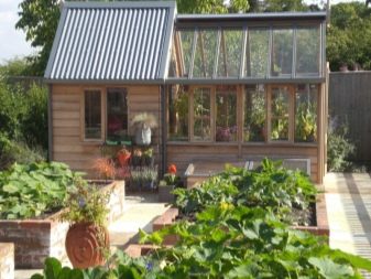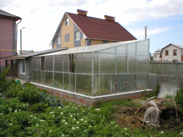 - Seul hangar Ces nouvelles conceptions sont idéales pour les petites zones et peuvent être construites de part et d'autre d'un immeuble résidentiel. L'extension de la maison est placée de manière à ce que la pente de son toit "regarde" vers le sud. Il se caractérise par un prix abordable et une compacité. Le film utilisé pour recouvrir le toit doit être remplacé par du plastique ou du verre, car il va s'affaisser avec le temps et ne pourra pas résister aux rafales de vent.