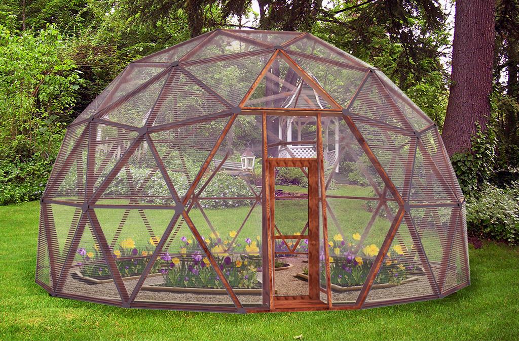 - L’hémisphère de serre est commode pour planter des cultures à croissance moyenne ou courte. En son centre, il est nécessaire de mettre un baril avec de l’eau peinte en noir, de sorte que le réservoir se réchauffe pendant la journée,et la nuit pour fournir à la pièce une humidité et une température de l'air optimales.