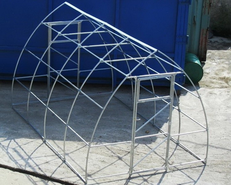 L'élément principal de toute serre - cadre. Ses caractéristiques de résistance déterminent en grande partie le temps de fonctionnement de la construction.Le cadre de la serre "Droplet" en métal. Profil galvanisé - le matériau principal pour le cadre de la serre. Il est plus facile de travailler avec le matériau, cela ne corrode pas non plus. Lors de l'utilisation d'un profil galvanisé est susceptible d'endommager le matériau de l'abri au niveau des joints. Tuyau galvanisé carré - 25x25 mm, section transversale de 1,4 mm.