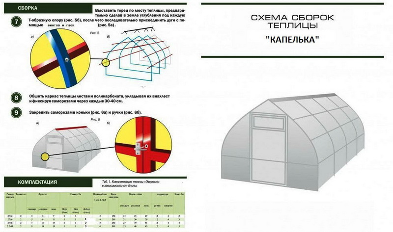 - le montage de la serre classique "Droplet" demandera beaucoup de temps et d’efforts; la description détaillée des étapes de montage, fournie avec tous les détails nécessaires, facilite la tâche;