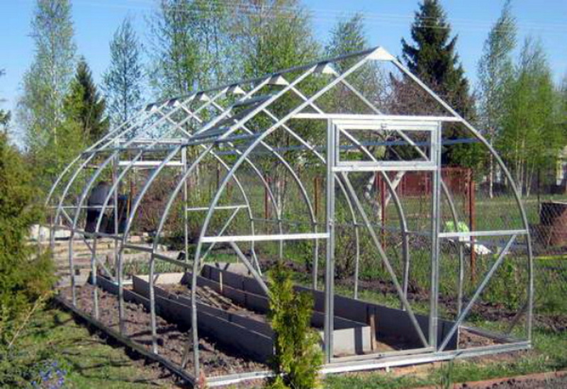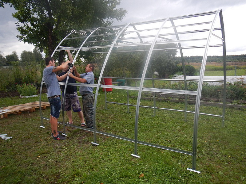 - Le cadre de la serre est constitué de tuyaux profilés de section rectangulaire. La taille des pièces utilisées (20x20 ou 20x40 mm) n’a pas été choisie par hasard. En raison de cette conception et résiste à la puissance de charge.
