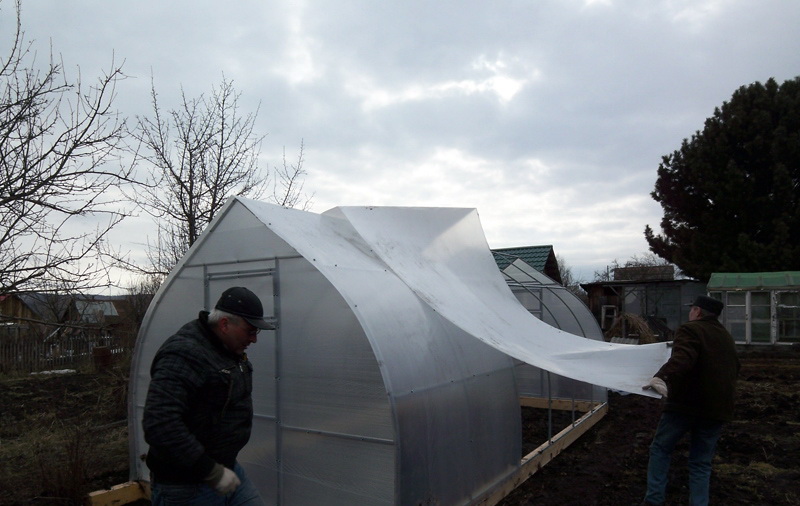 Veuillez noter qu'après le montage correct, vous ne devriez pas avoir d'éléments inutiles. Vous pouvez prolonger la durée de vie du polycarbonate si, après la fin de la saison, nettoyez les feuilles avec un chiffon doux imbibé d’eau savonneuse. En outre, il est utile de vérifier régulièrement les fixations et de les tordre si quelque chose se passe mal.