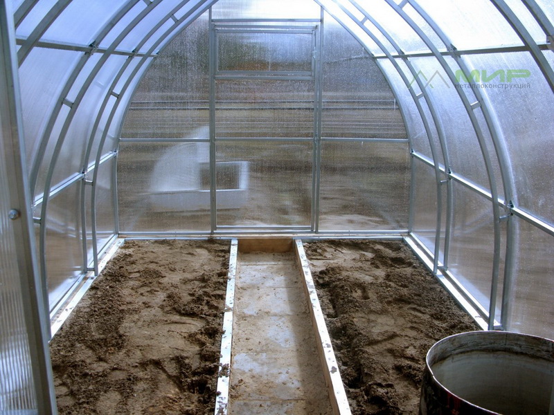 - Ensuite, vous devez installer une serre. La zone sélectionnée est dégagée du sol en tenant compte des petits trous requis pour les cosses.Les dimensions standard des niches sont de 0,2 m sur 0,2 m.