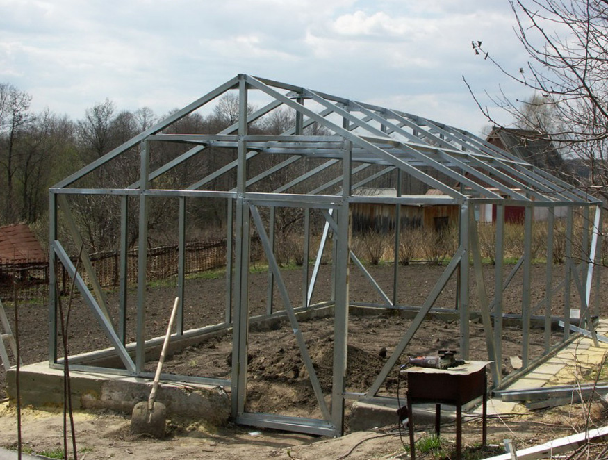 - si le bâtiment est situé à côté de votre maison, vous pouvez alors réaliser une serre avec un profilé métallique; un tel bâtiment est le plus fiable et durera longtemps;