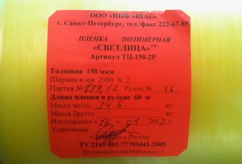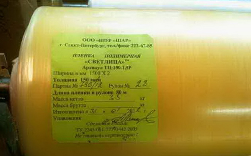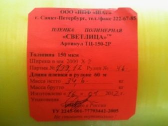 Conformément à GOST, le film stabilisé pour les serres ou les serres est étiqueté "ST", film stabilisé à la lumière - étiqueté "SIK". Ils utilisent également un film étiqueté «H» - il s’agit d’un revêtement stabilisé ou non stabilisé pour l’emballage de produits ménagers.