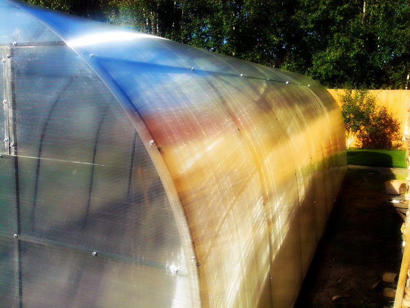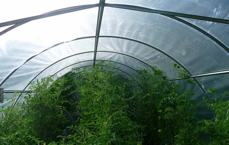 Tout cela conduit à ce que, la nuit et les gels possibles dans une telle serre, un régime de température plus élevé sera établi que dans les serres avec un revêtement plastique du même volume et de la même forme, ce qui constituera un avantage significatif pour un tel film.